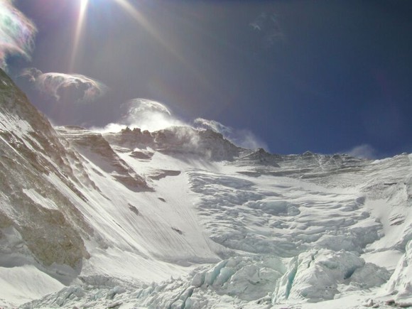 The Lhotse Face with Camp III approximately half way up the face