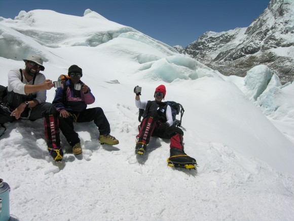 Sean, one of the team's Sherpas, and René after returning to Base Camp from Camp II, 28th April 2006