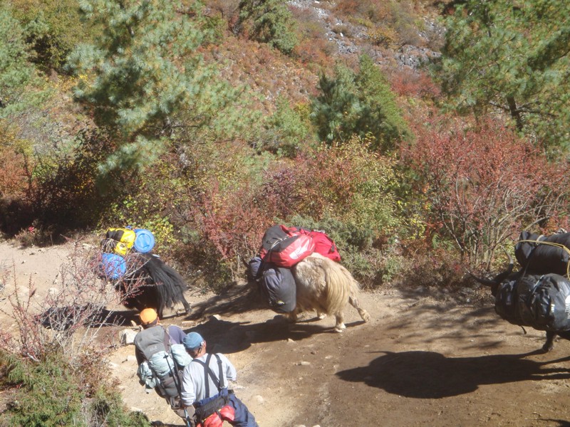 Yaks Carrying René's Red and Yellow Bags